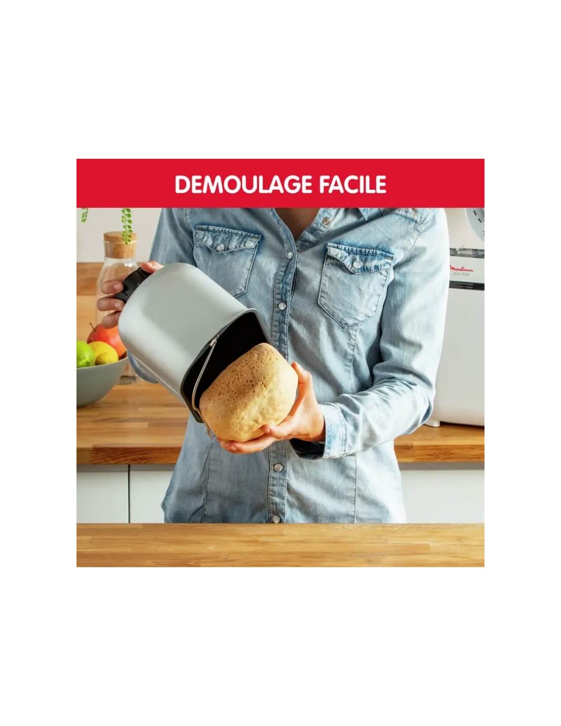 La cuve amovible et antiadhésive permet un nettoyage simple et rapide après chaque utilisation de votre machine à pain Moulinex.