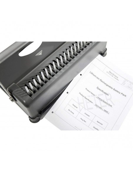 Perforelieuse Génie CB 850 - Machine à relier en spirale - Capacité de reliure : 350 feuilles (80g / m²) - Capacité de perforation: 12 feuilles (80g / m²) - Avec 4 trous et 75 accessoires : de 10 x 6 mm, 10 x 8 mm, 5 x 10 mm, dos noirs, 25 feuilles de films opaques, blanc 25 feuilles de 230 g dos cartonné (10 x noir/10 x/5 x bleu) - Dimensions : 390 x 260 x 160 mm - Poids : 3.7 Kg - Garantie : 1 an
