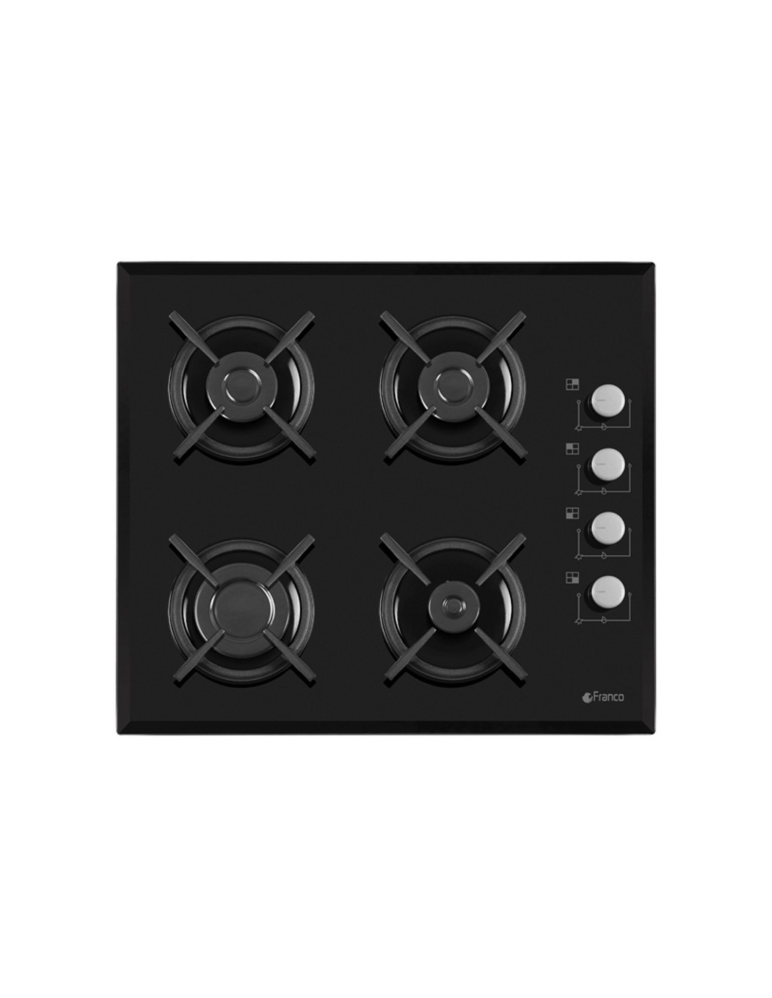 Plaque De Cuisson FRANCO 60344-BF - Type de plaque: Gaz - Largeur: 60 cm - Nombre de Foyers: 4 Foyers - Grille en fonte - Revêtement: Vitro - Allumage électronique avec une main - Couleur: Noir - Garantie: 2 ans