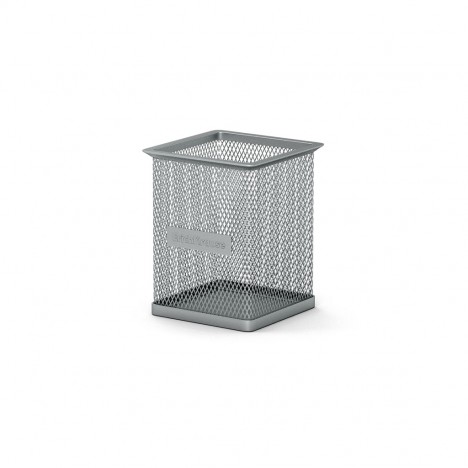 Porte-stylo carré en métal ErichKrause® Compass Silver - Réf :22504 - Avec une base carrée. Le matériau est un treillis en acier avec revêtement de peinture. Les dimensions sont 80*80*95 mm.