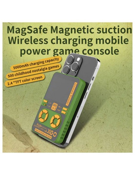 Power Bank BLULORY - 2 en 1: Power Bank et console de jeux - Console de jeu mobile à chargement sans fil à aspiration magnétique Magsafe - Capacité de Batterie: 5000 mAh - 500 jeux classiques intègrés - Type de sortie C : 5 V/3,1 A, 9 V/2,22 A, 12 V/1,67 A, max. 22,5 W - Transmission: Max. Batterie 15 W: Li-polymère - Capacité nominale: 3 000 mAh 22,5 W - Couleur: Vert