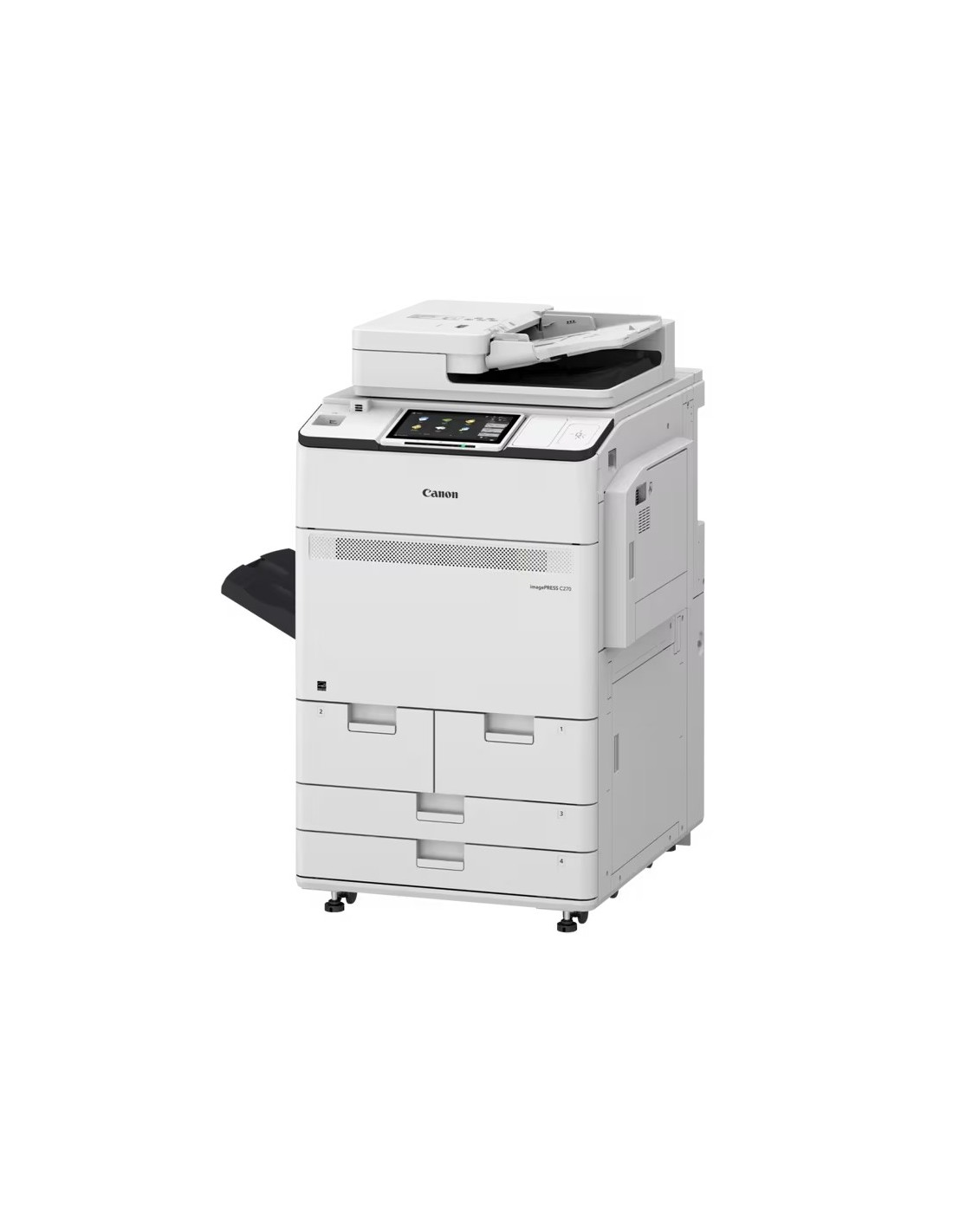 Ce photocopieur couleur Canon supporte des formats de 52 à 350 g/m² grâce à ses bacs modulables et son chargeur DADF de 200 pages.