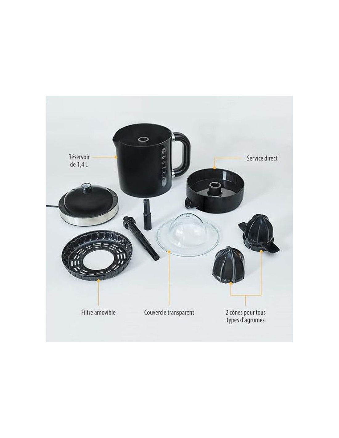Grâce à son presse agrume double cône, l’appareil s’adapte facilement aux différents formats d’agrumes pour une extraction optimale.