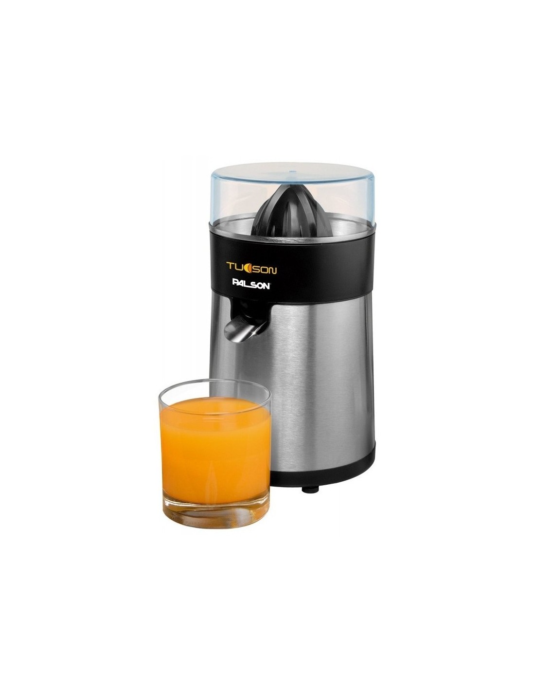 Réf:PALS.30499-Presse agrumes électrique Palson Tucson - Idéal pour presser oranges et citron - Puissance 85W - Entièrement démontable pour un nettoyage facile - Bec verseur pour servir facilement - Fonction anti-goutte - Filtre en acier inoxydable - Couleur Inox - Garantie 1 an