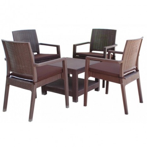 Réf: CHS080 SALON LA MARQUISE 4 places 4 Fauteuils + Table basse Couleurs salon: Blanc, Noir, Gris foncée, Wingue, Brun