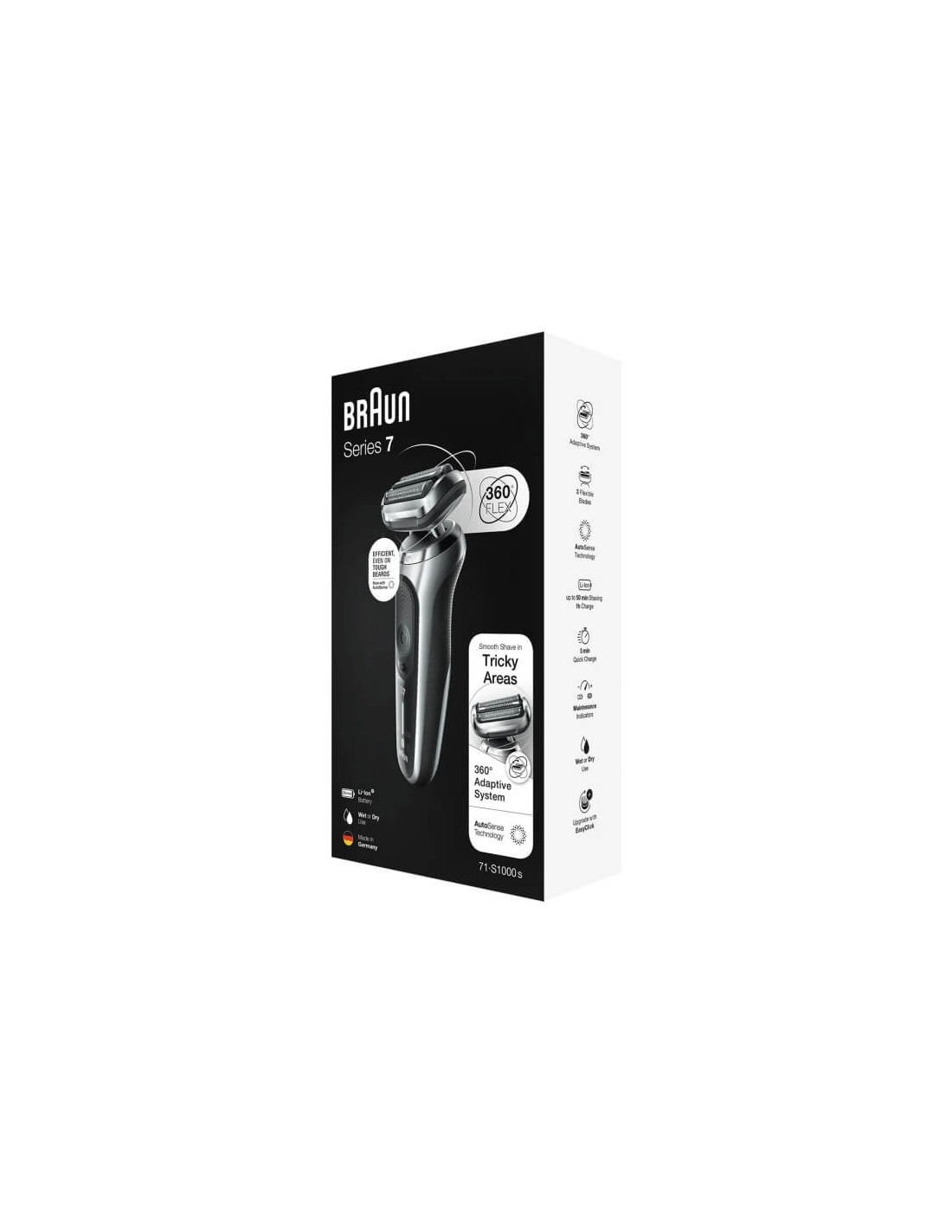 Découvrez le confort ultime du Rasoir Electrique Braun Series 7 Wet & Dry 71-S1000s. Équipé de la technologie intelligente AutoSense et d’une tête flexible à 360°, il s’adapte avec précision aux courbes du visage pour un rasage Braun doux et performant. Grâce à son design ergonomique, son étanchéité totale et sa batterie rechargeable, ce rasoir électrique Braun offre une expérience de rasage haut de gamme, que ce soit sur peau sèche ou humide.