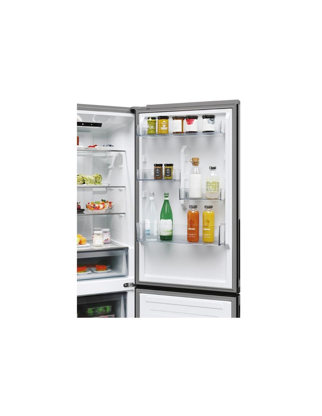 Le réfrigérateur Hoover HONCQ2T618EX offre une capacité totale de 355 litres, idéale pour les familles qui recherchent un réfrigérateur grande capacité Hoover alliant silence, efficacité et modernité.