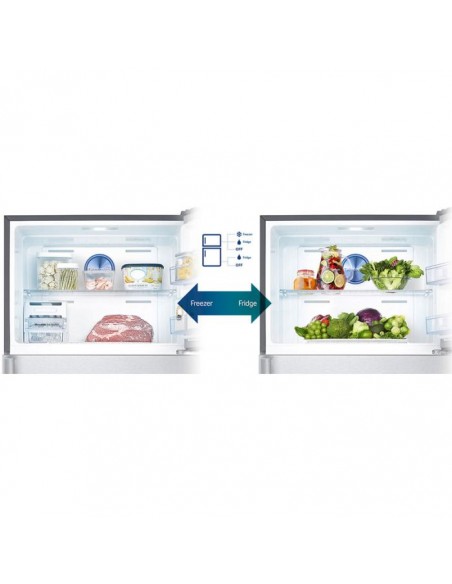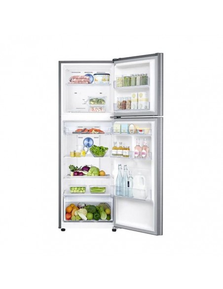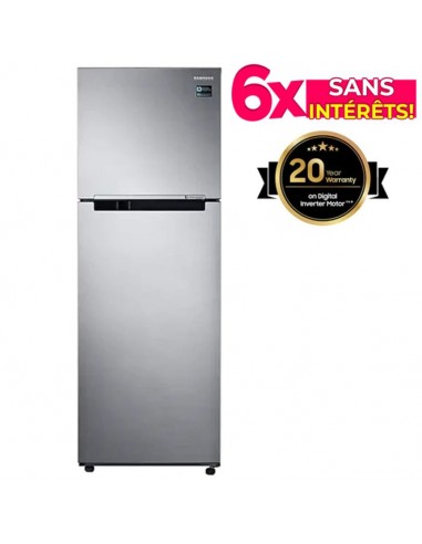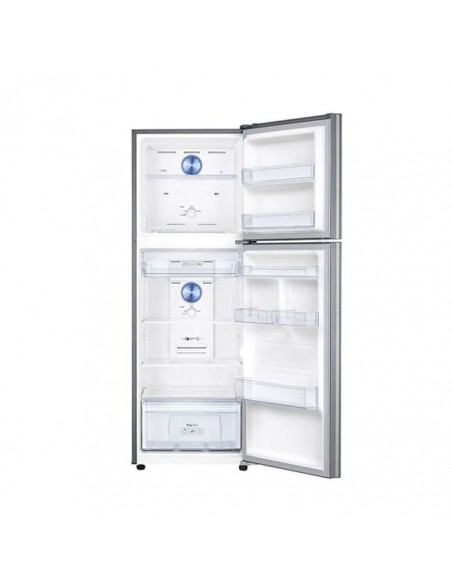 Réfrigérateur SAMSUNG 2 portes - Système de refroidissement: NoFrost - Volume Brut: 370 Litres - Classe énergétique: A+ - Mono Cooling , Digital Inventer Compressor - Twist Ice Maker - 3 plateaux - Système désodorisant - Eclairage intérieur LED - Chambre fraiche - Couleur: Silver - Dimensions (L*H*P) : 60x171.5x 67.2 cm - Garantie: 3 ans