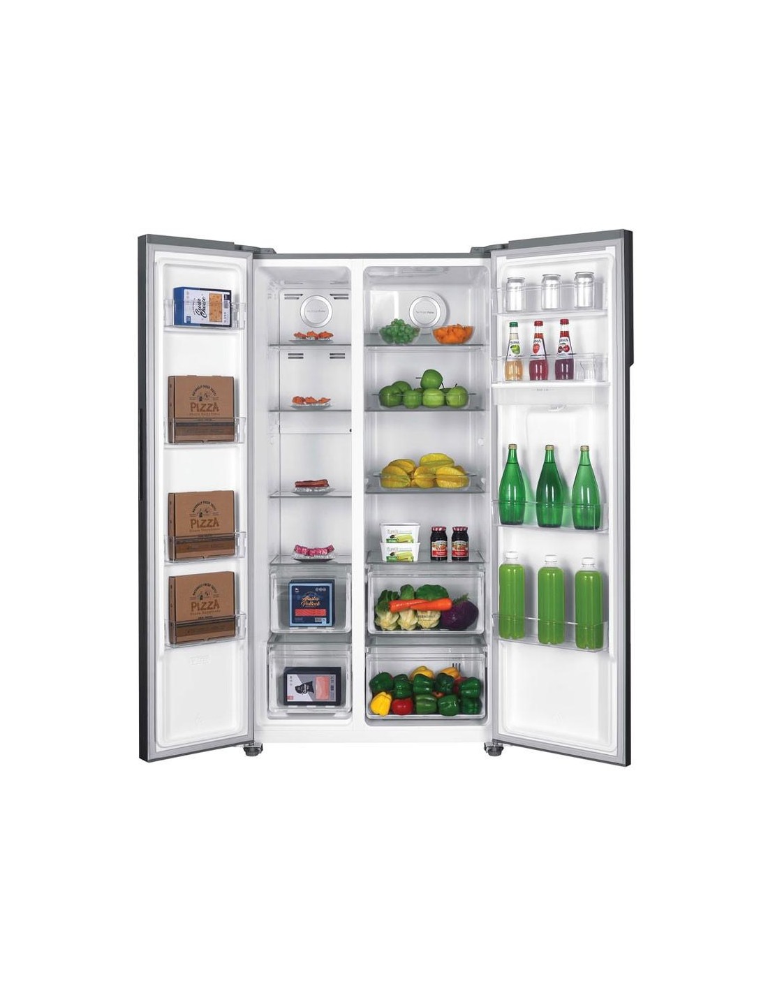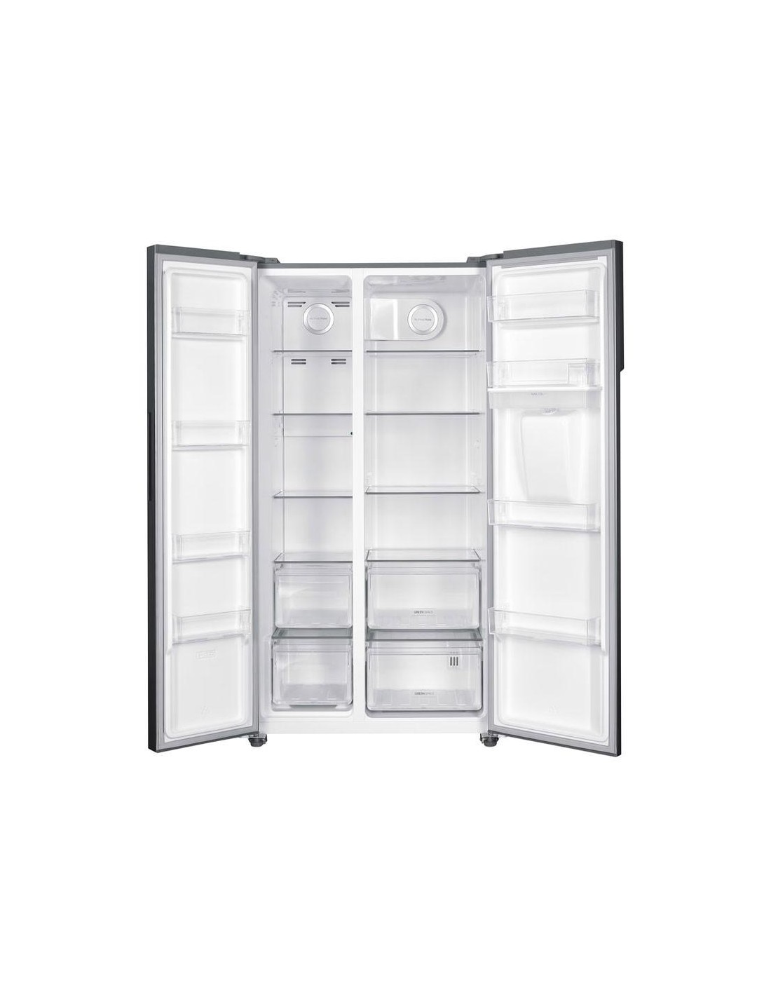 Le Réfrigérateur Side By Side HOOVER HHSBSO6174XWDK-1 offre un espace intérieur optimisé pour stocker facilement les courses volumineuses.