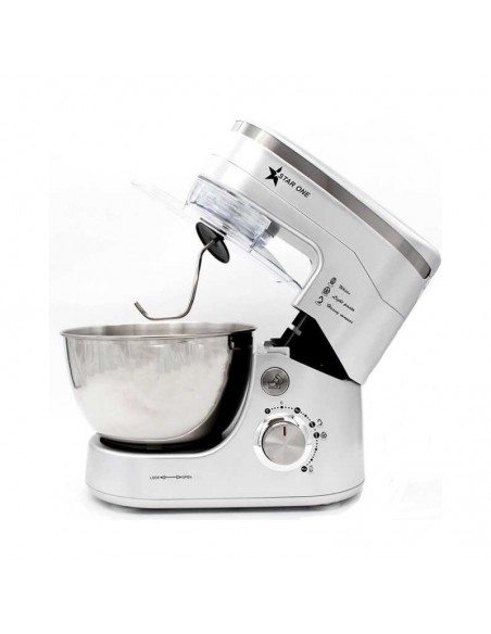 Disponible en élégant coloris Silver, ce robot pétrin ajoute une touche de style à votre cuisine tout en facilitant vos tâches de préparation. Faites l'expérience de la facilité et de l'efficacité avec le Robot pétrin STARONE 4.5 L - Silver.