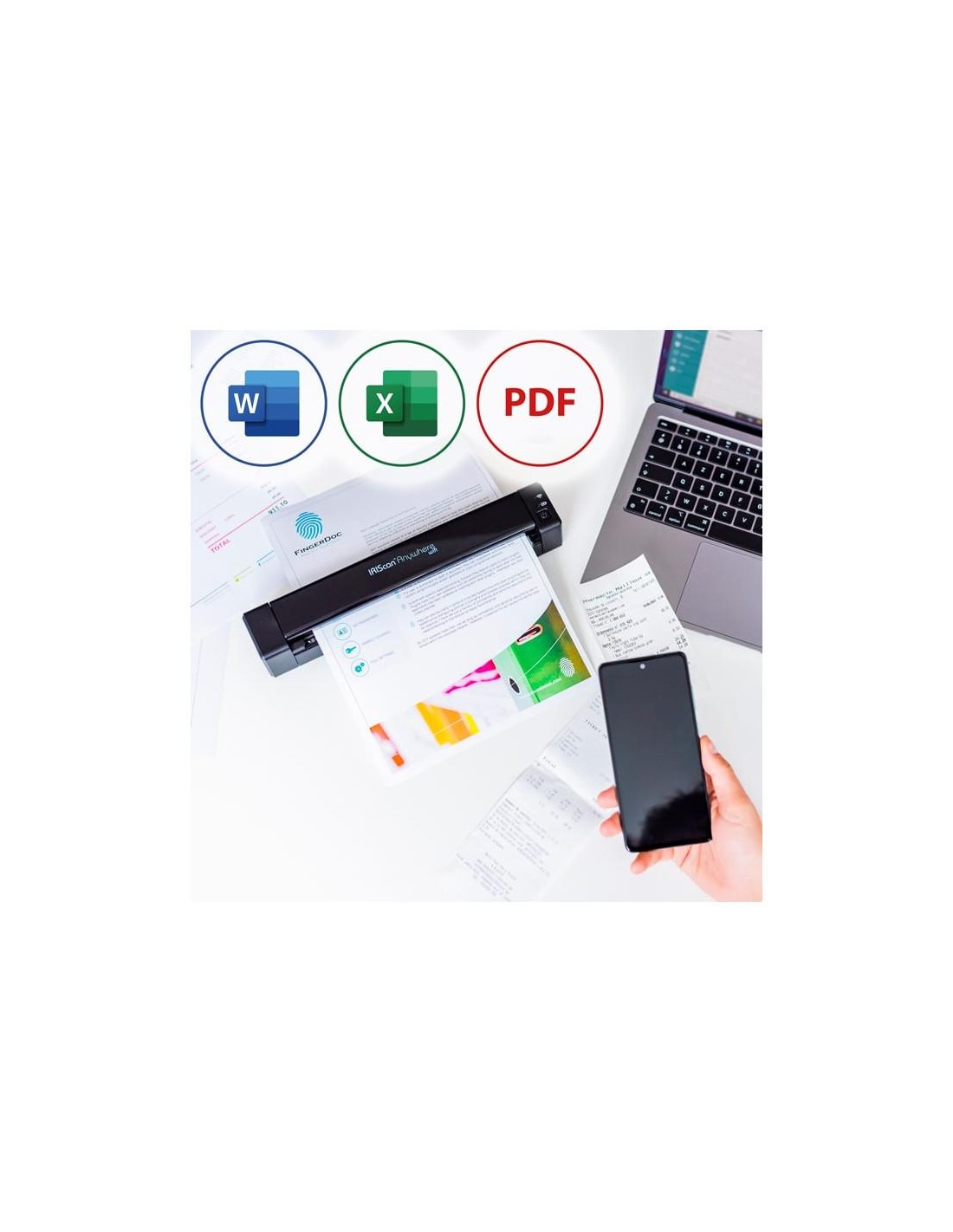 Le Scanner IRIScan Anywhere 6 Simplex WIFI accepte PDF, JPEG, TIFF et d’autres formats d’image pour vos documents.