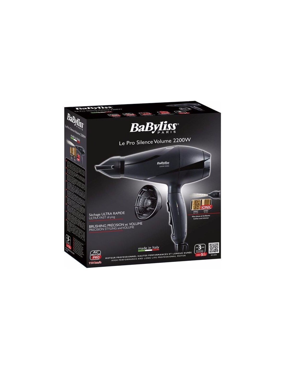 Réf : 6613DE - Puissance 2200 Watts -Moteur AC Professionnel longue durée - Vitesse d’air 110 km/h -6 vitesses/température + touche air froid - Fonction ionique : élimine l’électricité statique et rend les cheveux brillants - Concentrateur 6 x 75 mm-Diffuseur -Filtre arrière amovible -Poids plume: moins de 500g - Anneau de suspension - Garantie : 1 an