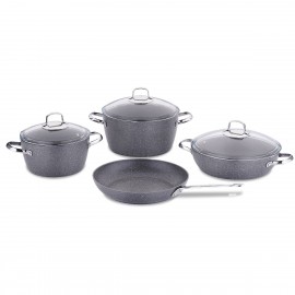 Set 7 Pièces KORKMAZ Nea Granit - Gris (A2892) - Réf : A2892 - Nombre de Pièces : 7 pièces - 3 Faitouts avec couvercles en verre résistant à la chaleur et poêle - Diamètres : 20 cm | 24 cm | 26 cm - poêle 26 cm - Capacité : 3 L - 5 L - 3.5 L - Matériau : Revêtement PTFE de type granit extra résistant aux rayures - Compatible avec tous feux y compris induction - Système de base Solar Base qui assure le transfert de chaleur le plus élevé - Poignées ergonomiques - Facile à nettoyer