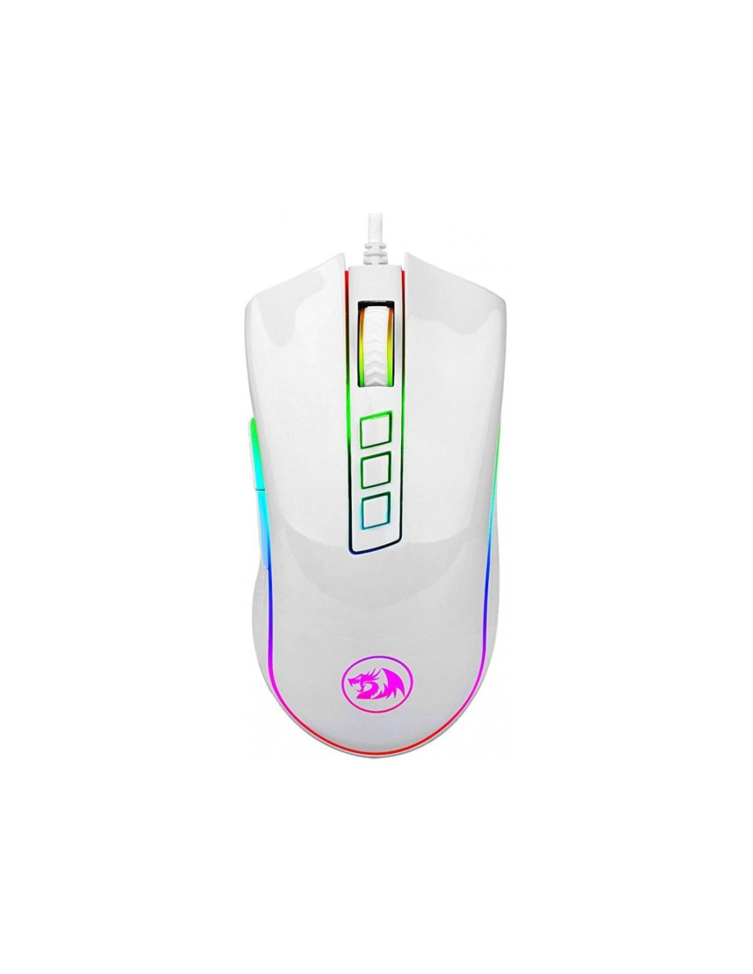 Souris Gamer REDRAGON COBRA - Rétro-éclairé RGB - Technologie de connexion: Filaire - Type de souris: Optique - Résolution Optique: 10000 dpi - Interface avec l'ordinateur: USB - Boutons programmables: 7 - Compatible: Système Windows 2000 / ME / XP / 03 / VISTA / 7/8/10 - Longeur de Câble: 1.8 mètres - Couleur: Blanc - Garantie: 1an