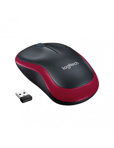 Souris Optique LOGITECH M185 - Technologie de connectivité: Sans fil - Connexion: USB -Fréquence: 2.4 GHz - Distance de fonctionnement: 10 mètres - Résolution Optique: 1000 dpi - Nombre de boutons: 3 - Type de piles: 1 x AA - Forme confortable et compacte - Couleur: Rouge - Garantie: 1 an