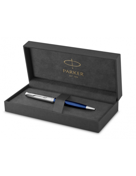 - Fiable et hautement professionnel. Partenaire idéal au potentiel illimité, Parker IM est à la fois élégant, brillant et sûr. Doté d'une pointe durable en acier inoxydable et de finitions aux couleurs de la marque, ses détails raffinés assurent une expérience d'écriture fiable. Aluminium anodisé, rythmé par des motifs contemporains gravés aux graphismes intemporels et très visuels. En boîte-cadeau. Couleur de l'encre: Noir et avec une pointe à bille fine, Couleurs disponible: BLEU