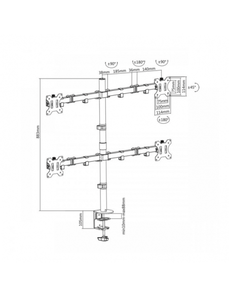 Support de bureau SBOX - Taille de l'écran : 13" - 32" - Supporte 4 Ecrans - Poids maximum du moniteur : 8 kg par montage - Pivot : 90° - Inclinaison 45 ° - Garantie 1 an