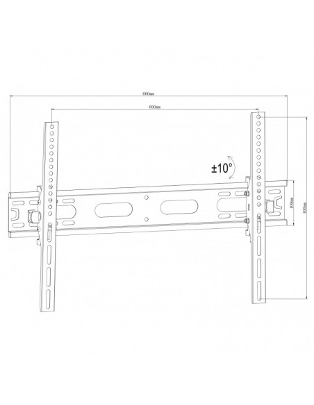 Support Mural pour Téléviseur 37"-70" - Poids maximum du moniteur: 30 kg - Distance de l'écran par rapport au mur: 53mm - Réglage de l'axe vertical: -8°~+15° - Montage: VESA 200x200, 300x300, 400x200, 400x300, 400x400, 600x400 - Couleur Noir