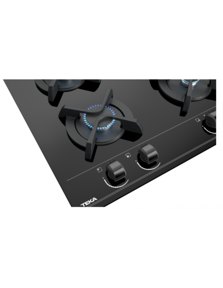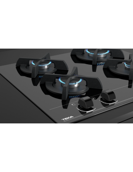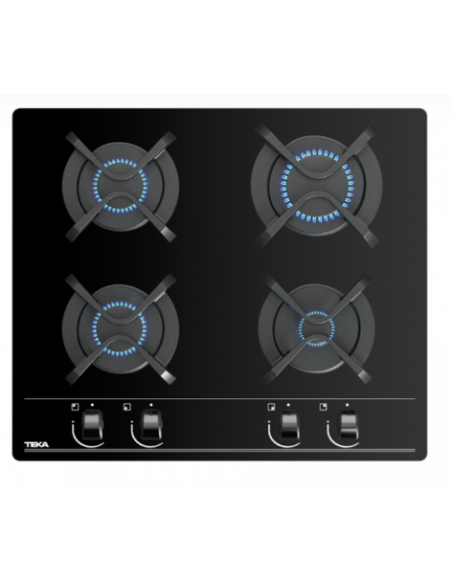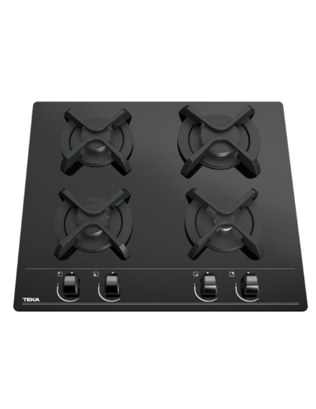 Table de Cuisson TEKA - Couleur : Noir - 60 CM - Brûleurs à gaz : 4 - Grandes grilles en fonte - Allumage automatique - Boutons de commande avant - Sécurité thermocouple - Garantie 1 an