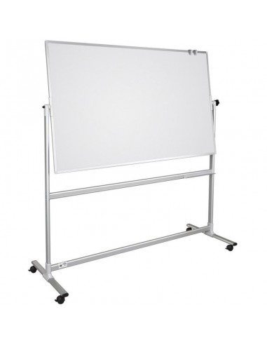 Tableau Blanc Pivotant Magnétique 2X3 - Dimensions: 120 × 90 cm - Double Face - Support mobile en aluminium avec Quatre roulettes verrouillables - Porte-stylo (30 cm)