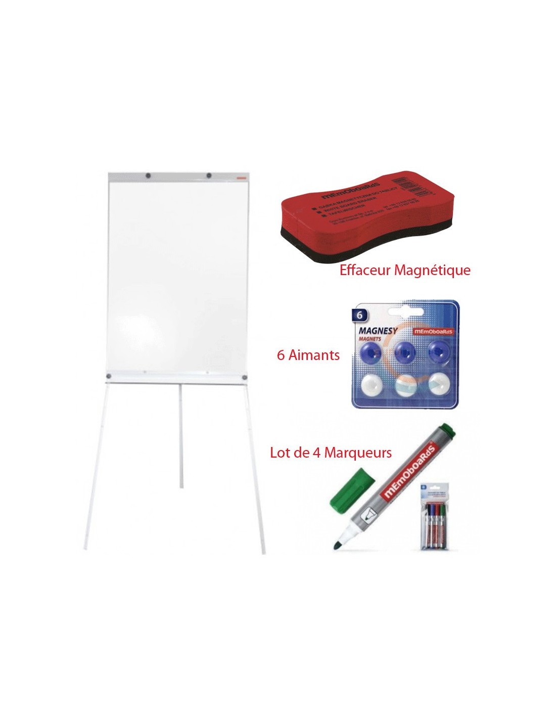 Réf:FM13-Tableau Blanc Magnétique MEMOBOARDS Mobile - Dimensions: 70 x 100 cm - La surface est en acier peint en blanc - Pieds réglables en hauteur - Informations supplémentaires: Tableau blanc magnétique, à utiliser au choix avec ou sans papier.