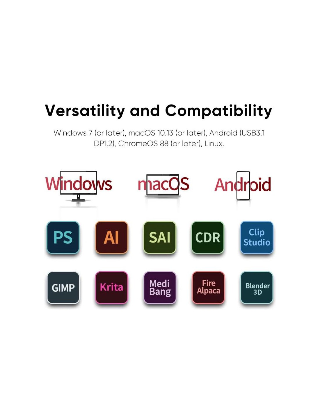 Fonctionne parfaitement sous Windows, macOS, Android et Linux, offrant flexibilité et intégration facile pour illustrateurs et graphistes professionnels.