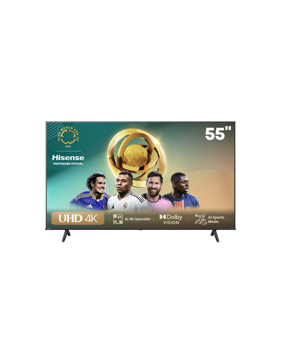 Le Smart Tv Hisense 55A6N offre des images en 4K UHD avec une clarté exceptionnelle grâce au HDR Dolby Vision. Parfait pour les films, les matchs et les jeux vidéo immersifs.