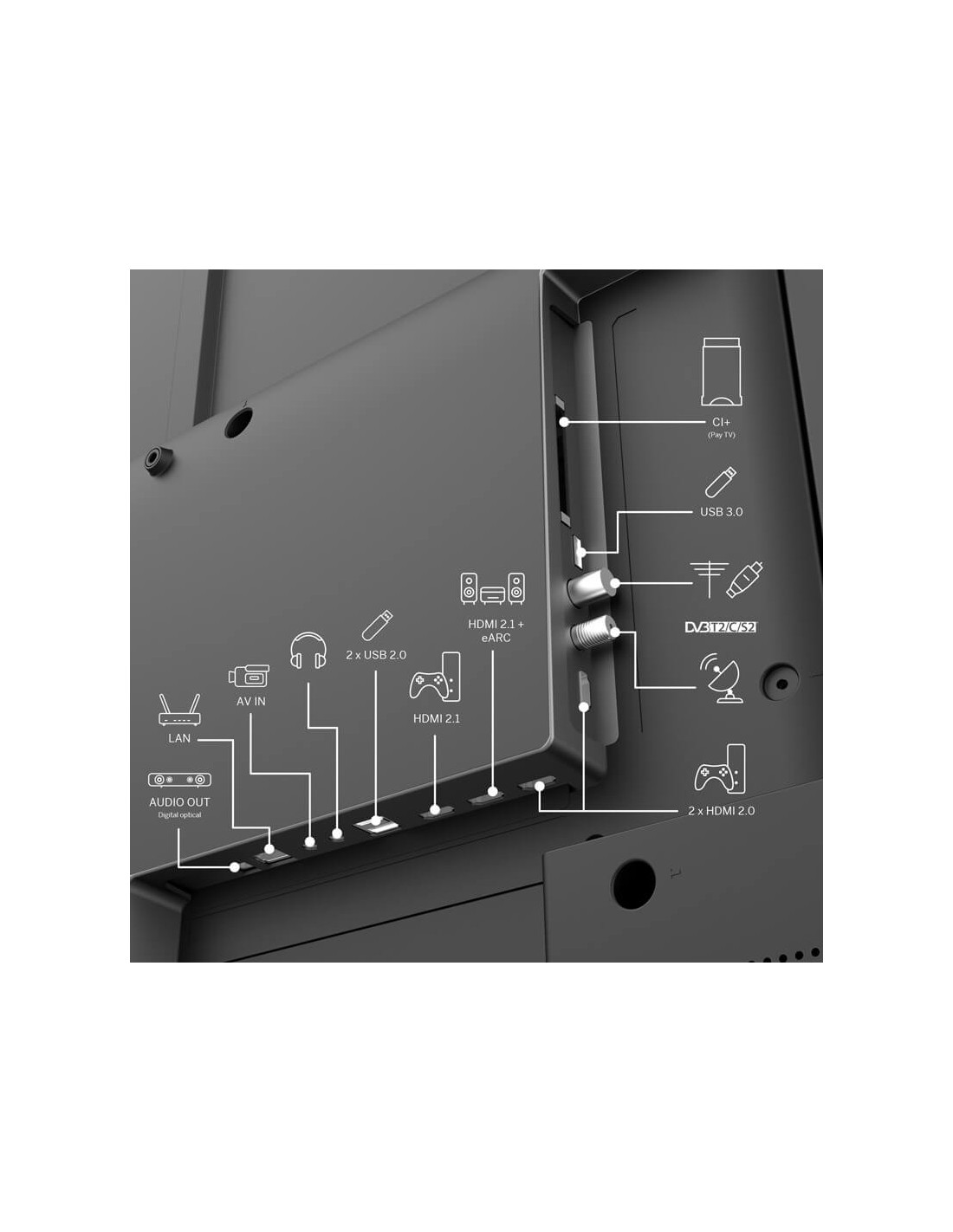 Le TV Thomson 43 pouces Google TV possède 4 ports HDMI, 2 USB et 1 RJ45 pour connecter tous vos appareils multimédias.