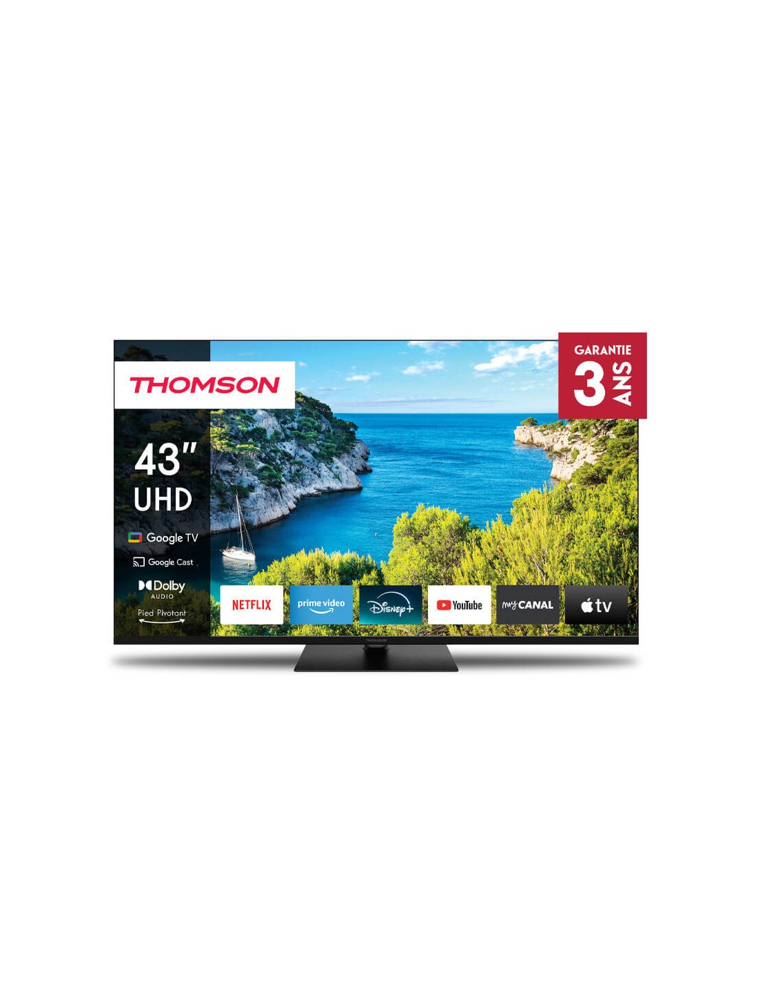 Le Tv Thomson 43" 43UG5C14 4K UHD Side Feet Google TV propose une qualité d’image exceptionnelle et un son immersif grâce au HDR10 et Dolby Audio. Sa TV Thomson 43 pouces Side Feet s’intègre harmonieusement dans votre salon et facilite l’accès aux applications Google TV pour un divertissement complet. Idéal pour profiter de films, séries et jeux dans un confort optimal.